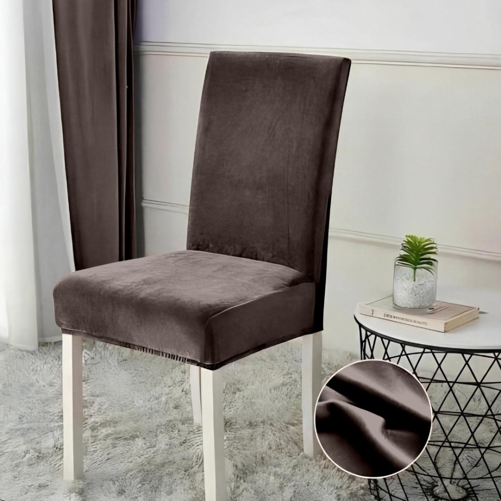 Set 6 huse PREMIUM universale pentru scaun, CATIFEA Maro, Johny Home Pucioasa, cod produs: SPR-HE-02