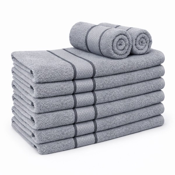 Set 8 prosoape mici 30x50cm, din 100% bumbac pakistanez, 400g, Line, Gri, Mid-Tex, cod produs: MDT-PS400-10