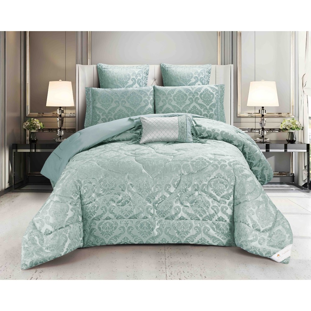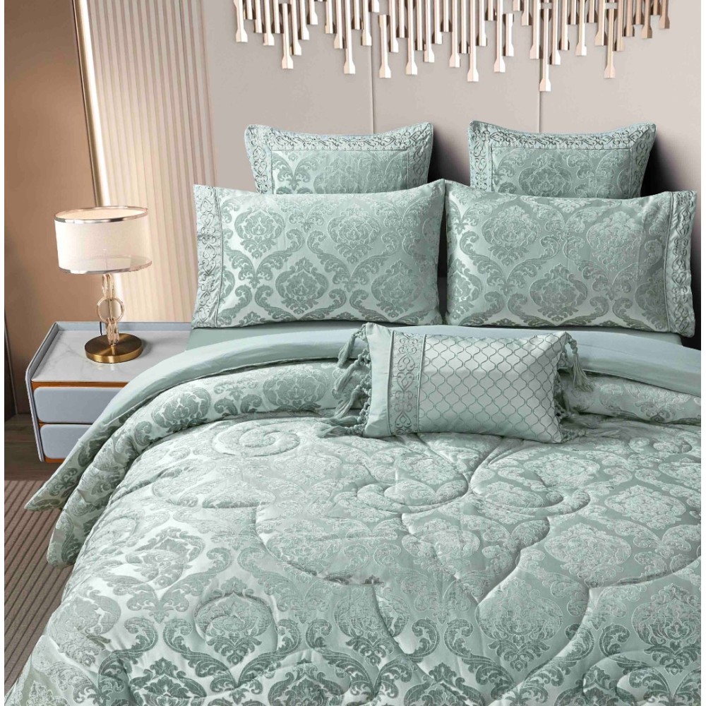 Lenjerie de Pat Luxury Jacquard Regal – 7 Piese cu Pilota Inclusă