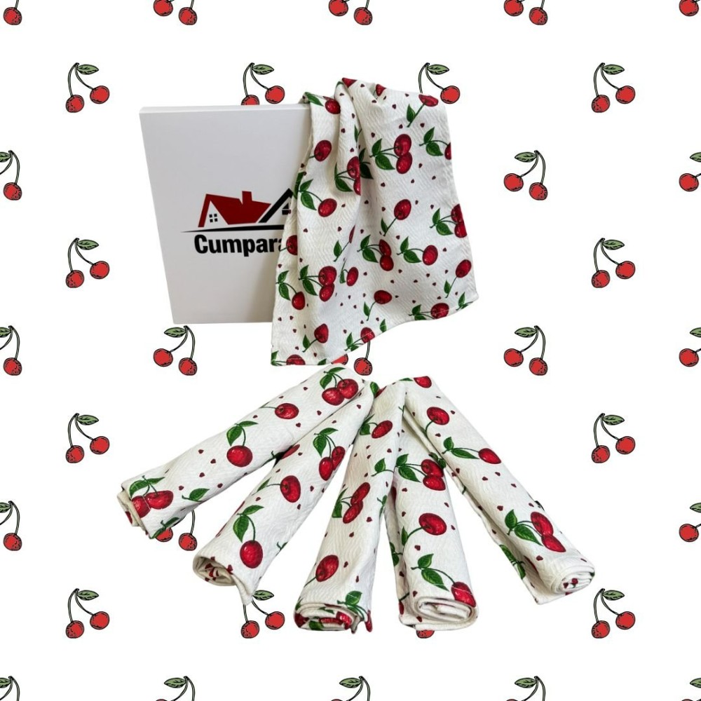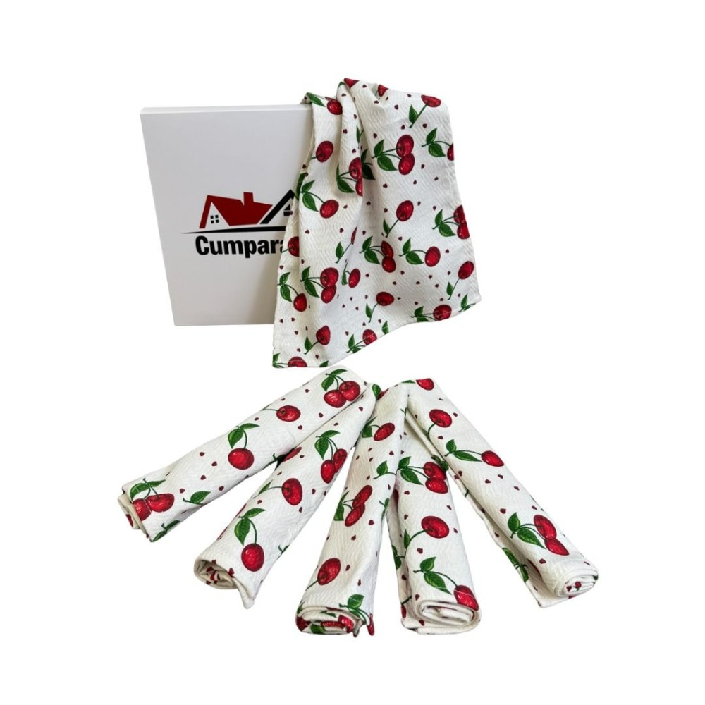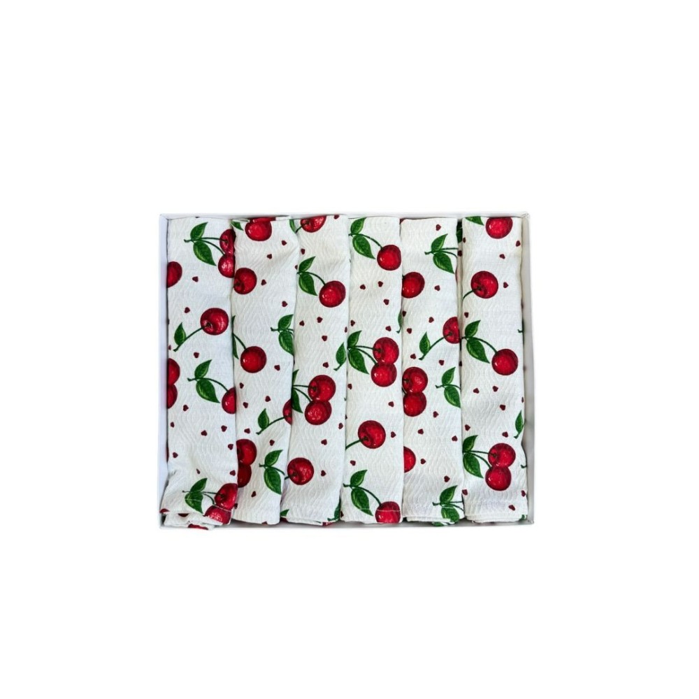 Set de 6 Prosoape Waffle, 30x50cm, pentru Bucatarie, Bumbac 100% Gofre, Atelier CumparaMisim, Alb, Rosu, cirese,inimioare , cod produs: CMP-B08