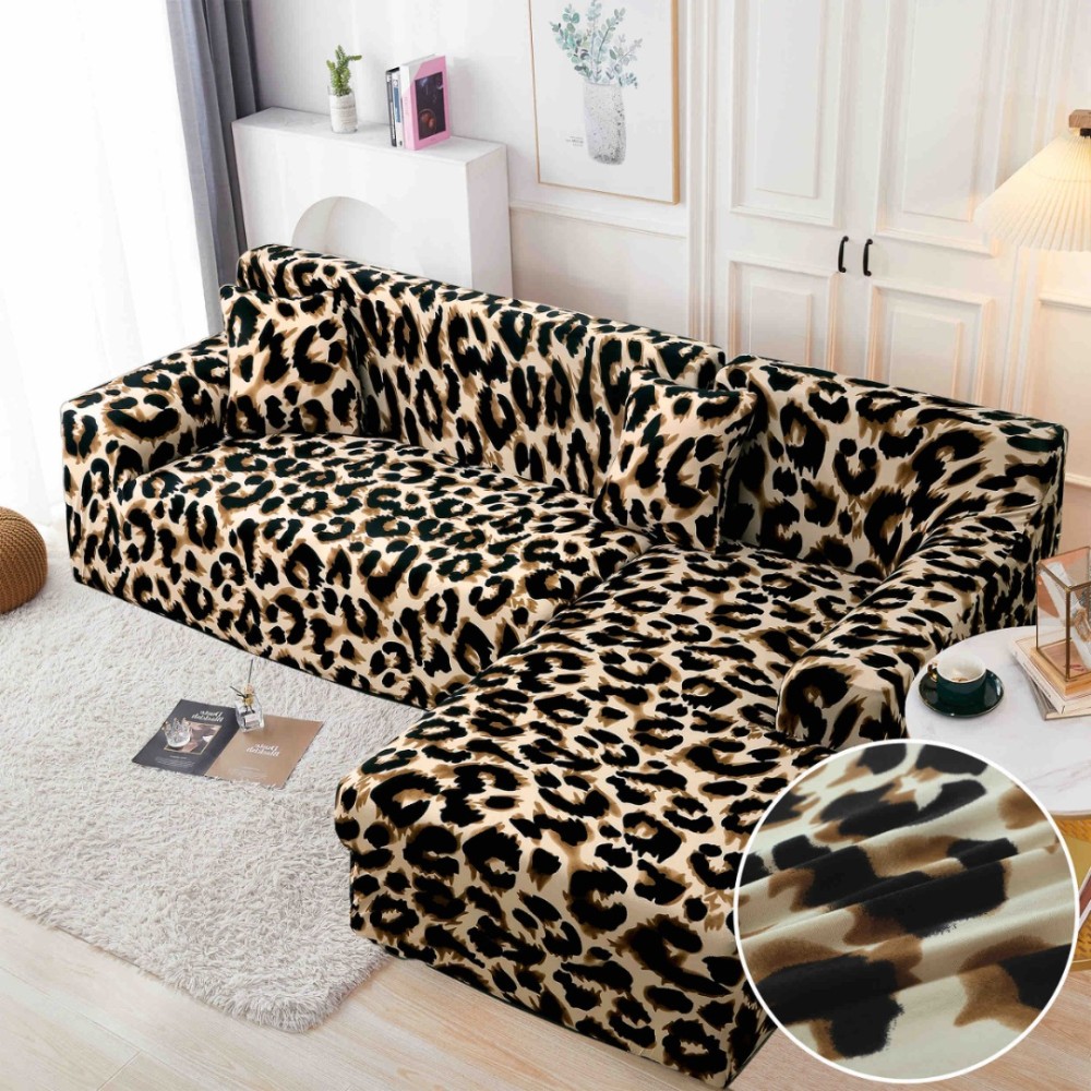 Set husa pentru coltar M + L, Elastica, Jojo Home, Maro, animal print, cod produs: JOJ-CTH-04