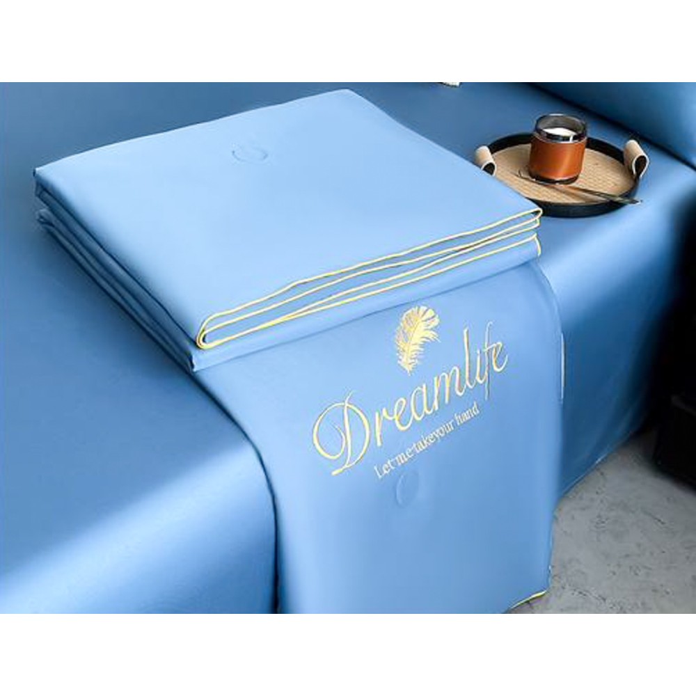 Transformă-ți dormitorul într-un sanctuar al eleganței și confortului cu setul de pat premium cu pilotă de vară, confecționat din material tip mătase cu atingere de gheață. Acest set a fost conceput special pentru cei care își doresc un somn odihnitor, într-un decor sofisticat și răcoros — chiar și în cele mai calde nopți de vară.