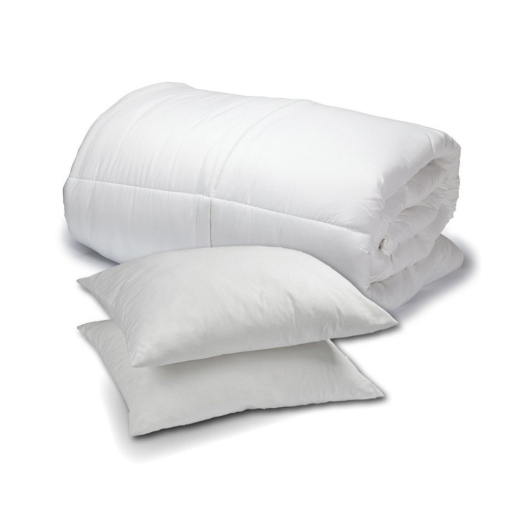 Set practic și ușor de întreținut, realizat din microfibră albă cu umplutură din vatelină siliconică, conceput pentru utilizare confortabilă în toate anotimpurile.