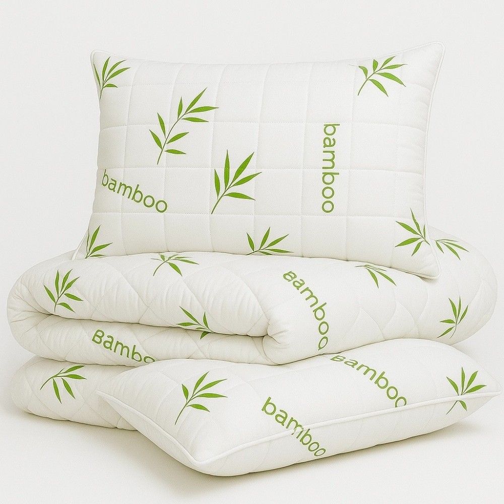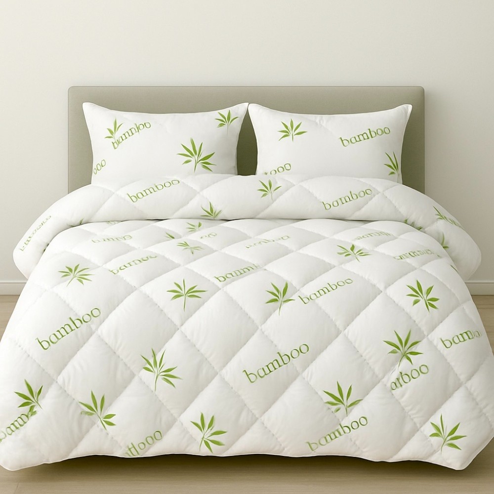 Set pilota 200x220cm + 2 perne 50x70cm, Bamboo, cu fibre siliconice.