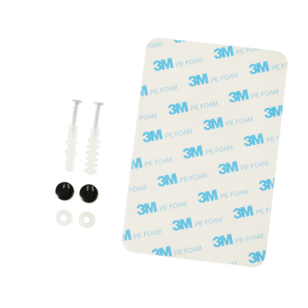 Suportul poate fi montat în două moduri - cu șuruburi sau cu bandă dublu adezivă 3M. Toate componentele sunt incluse în set.